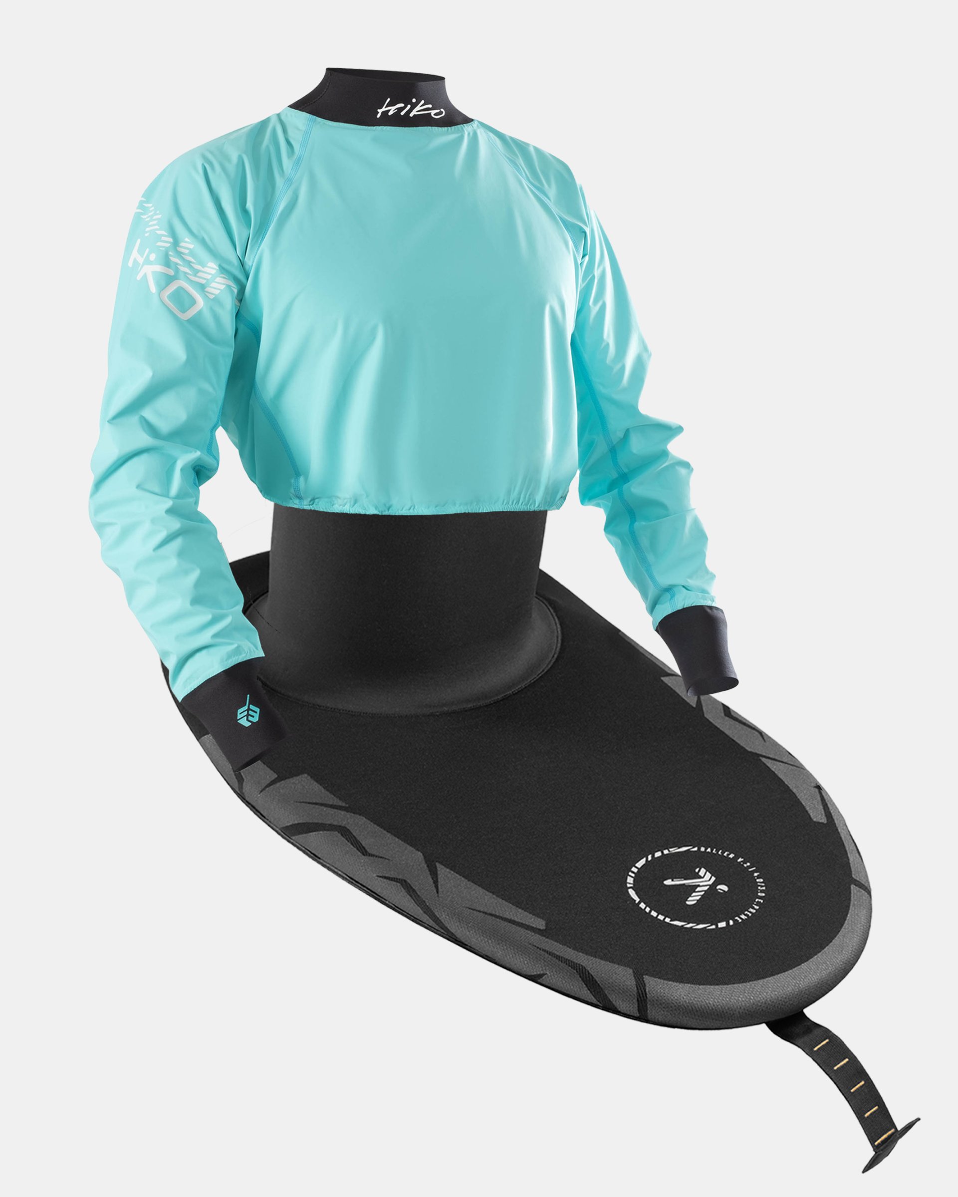 Tasked with building the ultimate dektop for kayak cross the choice of design was simple. We selected our BALLER 87 skirt with reinforced deck that is ready to take the boat on boat beating. It would not be for racing if was not attached to ZEPHYR top – light and stretchy so you can let the rest follow your tail.